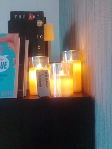 Adoro queste candele. Sono luminose e creano una bella atmosfera. Facilissime da usare e le fiamme tremolanti finte sembrano realistiche. Ottimo rapporto qualità-prezzo per un set da 3.